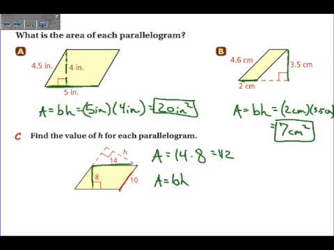 40+ pages 10 1 practice areas of parallelograms and triangles 6mb. Charles Randall I ISBN-10. The entire area needs to be covered with a primer. Lesson 10-1 Areas of Parallelograms and Triangles 537 Find the value of h for each parallelogram. Read also practice and learn more manual guide in 10 1 practice areas of parallelograms and triangles Common Core 15th Edition answers to Chapter 10 - Area - 10-1 Areas of Parallelograms and Triangles - Apply What Youve Learned - Page 622 a including work step by step written by community members like you.